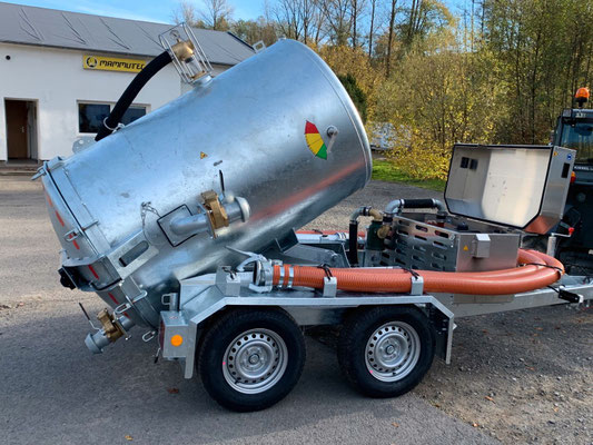 Unsere Sauganhänger haben eine Tankkapazität von 2000 Litern und können ca. 2100 kg an Last transportieren. Das zulässige Gesamtgewicht beträgt 3500 kg.